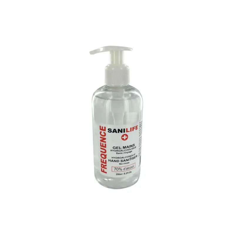 SANILIFE Hydroalcoholic Gel - 250 ml ideal for disinfecting your hands, this bottle is portable and effective without rinsing.