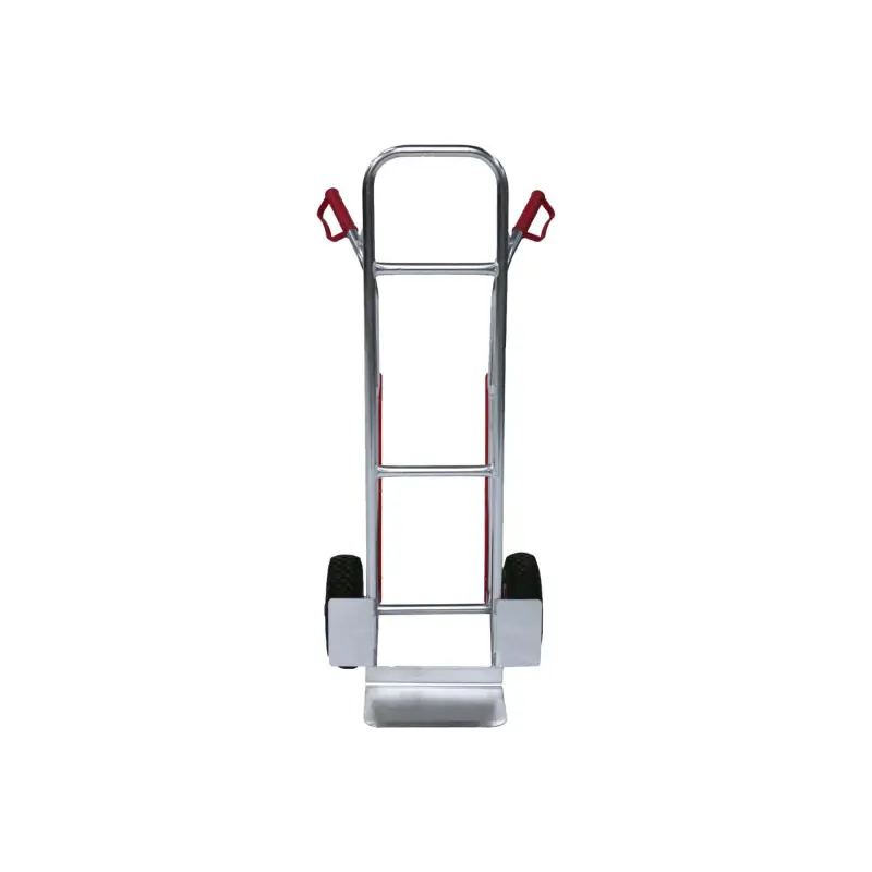 Economical aluminium hand truck 150 KG perfect for light handling and very easy to manoeuvre. The frame protection allows the hand truck to slide on stairs.