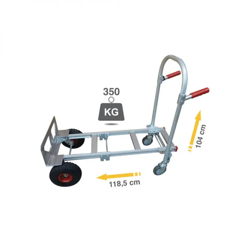 Aluminium hand truck - 2 in 1 - 250-350 kg maximum versatility one product two uses: hand truck and trolley! Sturdy and lightweight, this 2 in 1 hand truck will allow you to easily transport all items up to 250 kg and up to 350 kg when the product is used as a trolley.