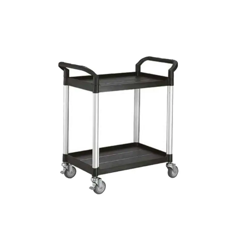 Multi-purpose trolley 250 KG - 2 shelves - 85x48x95cm robust multi-purpose trolley with extruded aluminium uprights and 2 shelves made of polypropylene and fibreglass. It supports up to 250 kg. It is easily movable with its handles on each side and its 4 swivel castors, 2 of which are equipped with brakes.
