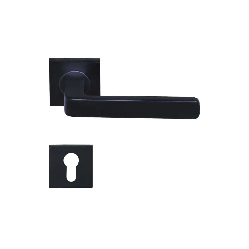 Soho door handles with square cylinder rosettes - black anodised aluminium x2 decorative rectangular handle in black anodised aluminium on square rosette. These modern and stylish handles will add a contemporary touch to your interior. They come with a pair of square cylinder rosettes.