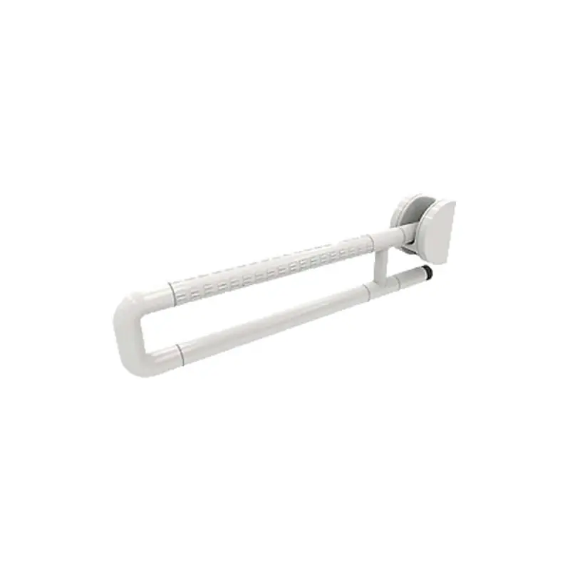 Stainless steel folding grab rail - white antibacterial polyamide exterior with a non-slip surface for added safety. Perfectly suited for people with reduced mobility, the 70 cm grab rail helps prevent falls in the bathroom or toilet and facilitates access. It allows individuals with reduced mobility to rise independently. The rail is made from white-finished stainless steel tube.