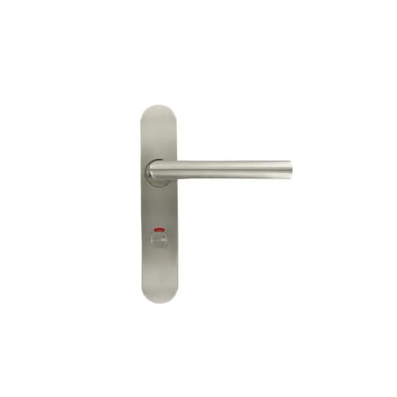 Stainless Steel Handle on Plate - Pomerol Plate with Locking Indicator - Brushed Finish handle mounted on a plate with a locking mechanism. Made of stainless steel with a brushed finish. This handle features an indicator to show whether the door is locked.