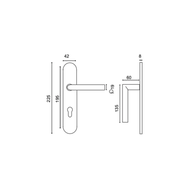 1x Stainless Steel Handle on Plate - Pomerol Plate with Locking Indicator - Brushed Finish