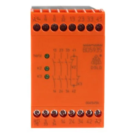 Ensure safety with the Dold Safemaster BD 5935 Emergency Stop Relay featuring 4 safety contacts and dual-channel functionality.