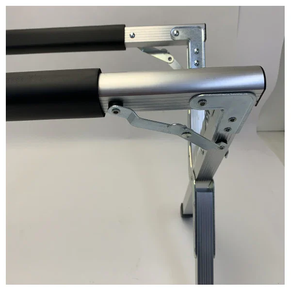 Ease of use is a priority. The stand is easy to set up and fold away. When folded, it has very compact dimensions (approximately 500 mm x 100 mm x 100 mm), making it easy to store in the car, camper, or garage. When unfolded, the height is 240 mm, providing a comfortable working height and reducing bending when reaching for your cold drinks or food.