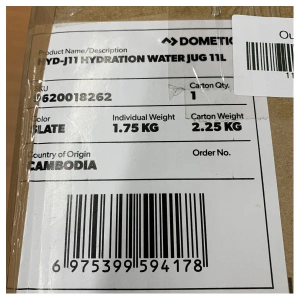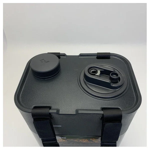 This water jug has an impressive storage capacity of 11 litres. The product is designed with dimensions of 36.2 cm high, 27.2 cm wide, and 27.2 cm deep and weighs only 1.8 kg when empty. The construction is made of high-quality, food-safe plastic, specifically BPA-free LDPE and polypropylene, ensuring a long lifespan and safe drinking water. The jug is finished in a neutral colour, allowing it to fit into any outdoor setup. For easy water dispensing, it can be combined with the optional Dometic GO Hydration Tap.