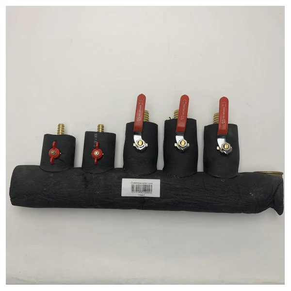 - Design: Fitted with multiple shut-off valves, both with red levers and small red buttons