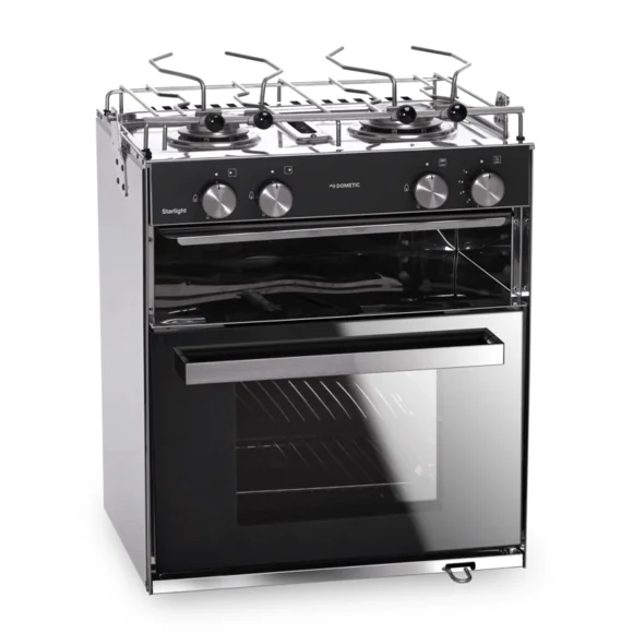 The Dometic StarLight Gas Cooker is a compact and innovative cooking solution designed for confined spaces such as boat galleys, motorhomes, and caravans. This versatile appliance combines a two-burner hob, a 28-liter oven, and a grill compartment, all within a slimline design.