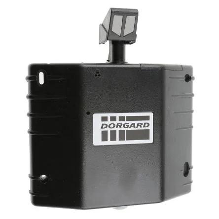 Dorgard Automatic Firedoor Hold. Battery powered and acoustically operated, Dorgard provides a self contained, easy to install means of keeping a firedoor open that will release automatically should the fire alarm sound.,Batteries and fixings included. Compliance: CE marked ; tested to BS EN1155 Activation: >65dB for 10-15 seconds Batteries: 2 x Alkaline C cells (RS Stock No. ; 591-231 591-231 or equivalent) Battery life: 12-18months Low Battery Warning: Intermittent audible Size and weight: W. 195m x H. 205mm x D. 45mm Wt. 940g Colour: Black
