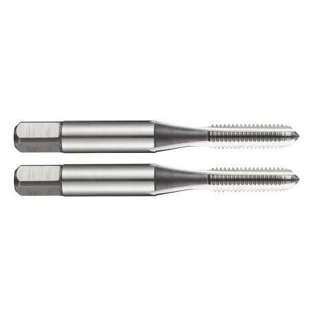 Dormer Set of Two E105 Fine Metric Thread HSS Hand Tap Bits. A range of manual fine metric thread HSS taps offered in a 2-part set (roughing and finishing). Each set consists of a roughing tap bit which has a five-thread entry and the finisher has two. The tap bit tolerance class is 6H, the cutting angle is 10° and the tap flutes are straight. These high-quality tap bits from Dormer are ideal for tapping in blind or through-holes. Threading taps are used to create threads for bolts in materials like metals and plastics. Threading taps work like a drill but due to the unique shape of a tap, when they are screwed into a piece of material, screw threads are created. Features and Benefits:. Material HSS (high speed steel) - for high durability and resistance to corrosion M Hand Tap Straight Flute Metric thread type Right handed thread direction – designed to tighten when a head or nut is rotated clockwise. Typical Applications. Taps and dies are used to create screw threads (commonly known as threading). Taps make nuts and a die makes a bolt. Forming threads using a tap is known as tapping, but using a die calls the process threading. Threading taps are used in applications such as: Engineering Manufacturing. Standard: DIN 2181. FAQs What is HSS? An acronym for High-speed steel, HSS is generally the go-to type of steel needed for tap and drill bits due to their excellent heat resistance at high speeds. As a standard drill can spin upwards of around 500 - 700rpm, the friction can cause a substantial build-up of heat. Something which would not be wanted when working with wood and plastic. What are the different types of threading taps? The four most popular ones are: Straight Flute Taps: most commonly used type of tap and suitable for blind or though hole thread production in most materials, mainly steel and cast iron. These collect chips in the straight flutes of the tool. Spiral Point Taps: suitable for threading through holes. They push chips through holes ahead of the tool. Spiral Flute Taps: intended primarily for threading blind holes. They pull chips back from the tip of the tool and up and out of the hole. Forming Taps: produce a thread by pressing the material rather than cutting and no chips are created. These Dormer taps are Straight Flute Taps.