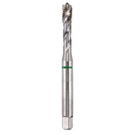 E473 Spiral Flute Green Shark Metric Taps. Dormer Shark Line Green Spiral Point Taps for Non-Ferrous materials. Constructed from premium grade High Speed Cobalt (HSS-E-PM) for increased hardness and improved edge strength. Super-B (TiAlN + WC/C) coating with a treated edge for outstanding performance in a wide range of non-ferrous materials Excellent performance in Brass and Copper High wear resistance and low material adhesion for less swarf build up and increased productivity Back tapered for faster, easier chip evacuation