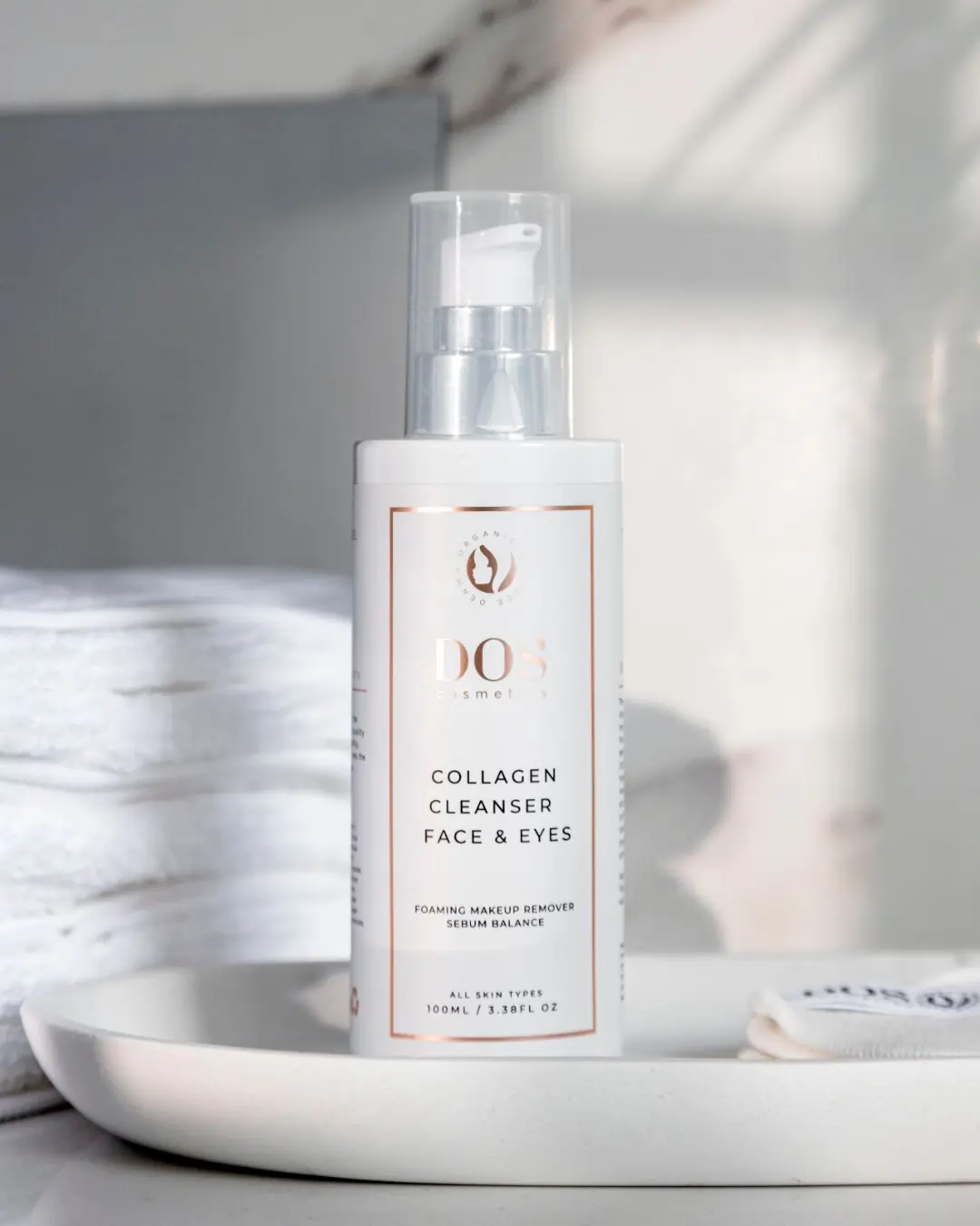 Experience gentle cleansing with DOS Cosmetics Collagen Face & Eyes Cleanser, enriched with Marine Collagen and Hyaluronic Acid.