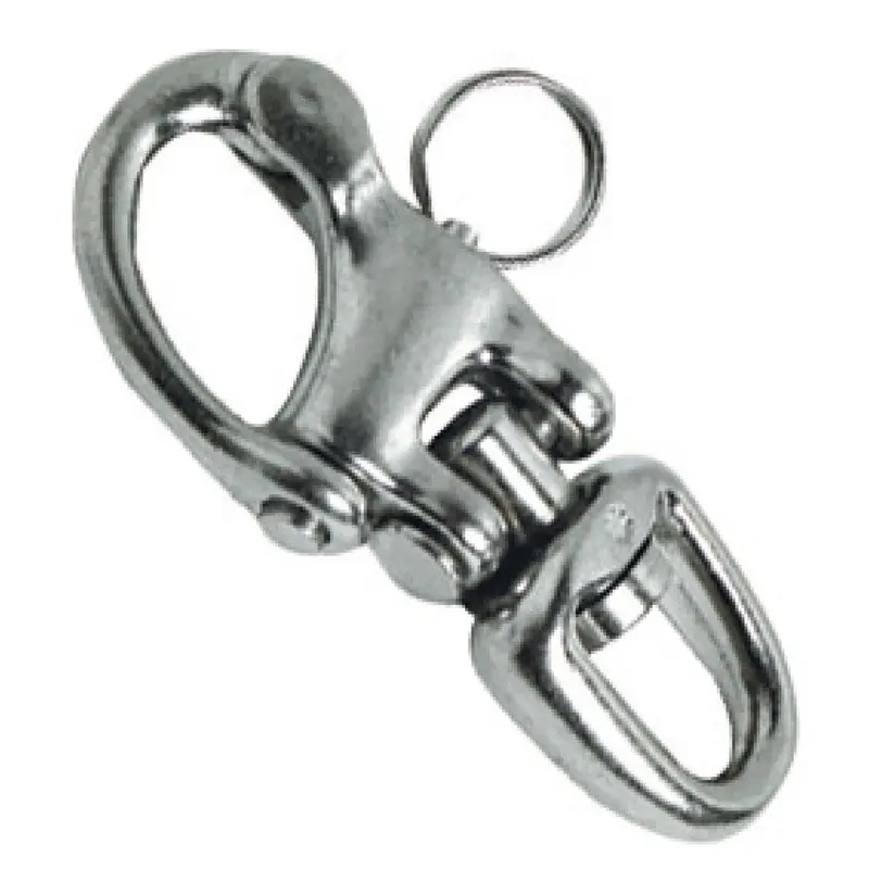 Durable double-joint snap-shackles for spinnaker and halyards, made from stainless steel.