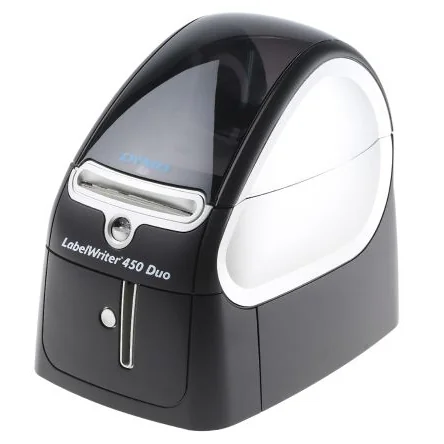 DYMO Label™ version 8 software, power cords, cables, operating instructions, label starter pack. EU Plug (European 2 pin CEE 7/17 ) supplied. LabelWriter 450 Duo. Now it's easy to label and dispatch your mail and to categorise your files Print your labels on paper or on permanent DYMO® D1 plastic Print up to 71 labels per minute (based on a 4-line address label) Uses thermal printing technology Create your labels direct in Microsoft® Word, Excel®, Outlook® and more, without the need to re-enter your text Create an individual label quickly via the QuickPrint function 600 x 300 ppi resolution (resolution of D1 labels: 180 ppi) Over 100 label styles and layouts View all label formats on screen Standby mode to conserve energy Printing examples: Address labels, dispatch labels, labels for files, name badges, inventories and barcodes Compatible with Windows 7, Vista and XP, and Mac OS v10.4 and above EU Plug (European 2 pin CEE 7/17 ) supplied