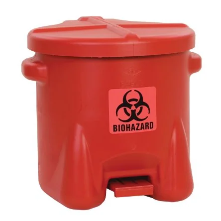 Eagle Biohazardous Poly Waste Cans 37.9L Red Pedal HDPE Waste Bin - ECN945BIRD