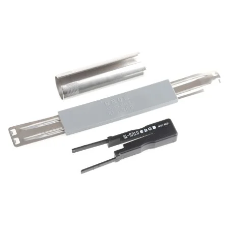 EAO Tool Kit, Series 61. The kit is comprised of a lens removal tool for flush mount pushbuttons and indicators, a dismantling tool for switching elements and a mounting tool for tightening (or loosening) fixing nuts.