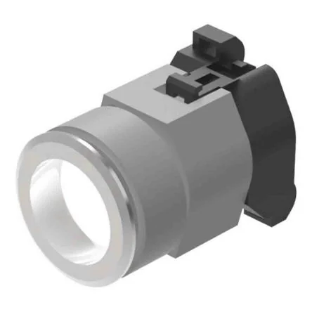 The EAO indicator actuator has a mounting cut out of 30.5mm and circular front dimension of 35mm. It conforms to IP 65 protection degree. The actuator has a colourless plastic lens that employs marking plate illumination. It has an aluminium front ring with a natural anodised colour and a black plastic housing. The indicator has a screw terminal connection method.Function: Indicator