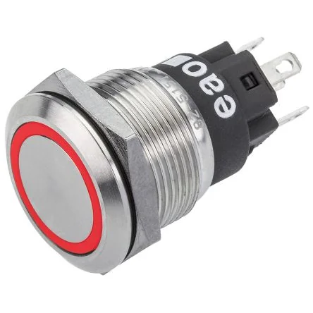 EAO Series 82 Stainless Steel Illuminated Anti-Vandal Switch. EAO Series 82 of robust stainless steel housed vandal resistant switches. Series 82 have been designed to adhere to IK10 impact resistance ; IP67 sealing requirements, making them suitable for exposed public applications. The series 82 are offered with either silver alloyed or gold-plated contacts, to offer reliable switching for low voltages ; currents. Features and Benefits Vandal resistant: IK10 impact resistance ; frontal protection up to IP67. Optional illumination ; laser marking options available. Excellent, crisp tactile feedback. > 1 million cycles of operation. Typical Applications Exposed public areas. Medical equipment. Audio and video equipment. Building management. Machinery ; factory equipment.