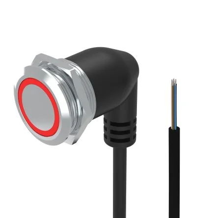 Durable illuminated push button switch with momentary action and blue LED for easy visibility.