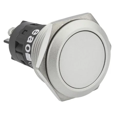 CE, UL. EAO Series 82 Anti-Vandal Switches Non-Illuminated. Series 82 anti-vandal switches from EAO. The switches have an aesthetic design combined with a robust metal housing and conform to protection ratings; IK10 (physical attack) and IP67 (Dust and waterproof), making them ideal for use in public areas and harsh conditions. Three size versions are available for mounting into cut-outs of 16, 19 and 22mm. Aluminium construction Flat, convex and raised button types available Excellent tactile switching action
