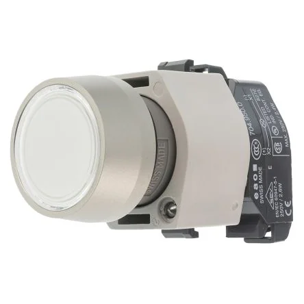 SEV, UL, CSA, NEMKO, VDE. Pushbutton Body Illuminated Raised Mount - series 04. Raised mount illuminated pushbutton bodies Natural aluminium anodized bezel 22.5 mm panel cut-out 29 mm bezel diameter IP65 above panel rating Contact block must be ordered separately