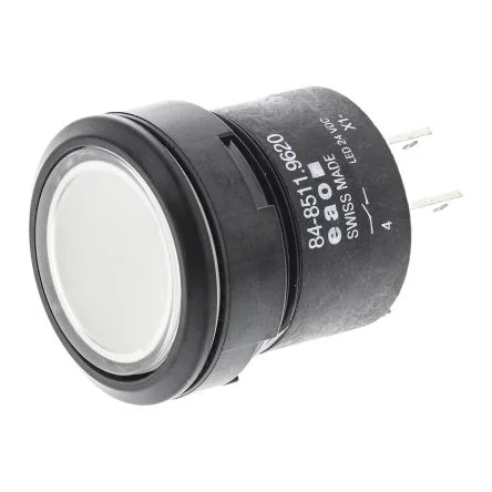 Full Face Flush Illuminated Switch. Brought to you by EAO, this selection of illuminated push-button switches feature full-face, high brightness LED illumination. Low profile with a flush fitting, these illuminated switches also assure a high degree of environmental protection. Features and Benefits:. • IP rating: IP67 • Contact rating: 200mA @ 42Vac/dc (Max. power 2W) • Low profile switch; 2mm high • Depth behind panel: 31mm • LED Voltage: 24V dc • Gold plated N/O contacts