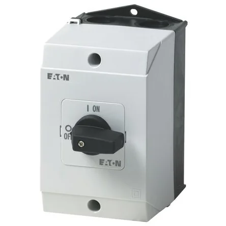 The Eaton 1 pole on-off switch is available with black thumb grip and front plate. It has 20 amp current rating.IP65 protection class III Overvoltage category Pollution degree 3