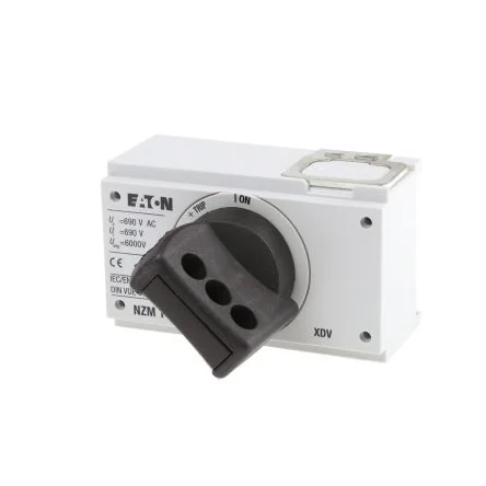Eaton Lockable Rotary Handle for use with NZM1 Series MCCBs - NZM1-XDV This lockable rotary handle from Eaton enable users to operate a switch with a type of rotational movement, facilitating locking facilities.• Designed to be directly fitted to the NZM1 range of MCCBs • Complete with rotary drive • The rotary handle is lockable whilst in the 0 positions on the switch, using up to 3 padlocks • Has the option to be combined with surrounding insulations • MODAN type handle position detection by wire release can be retrofitted • The circuit breaker can also be installed in a lying position 90° left or right, with the handle still in the same position • Comprised of a strong and robust material