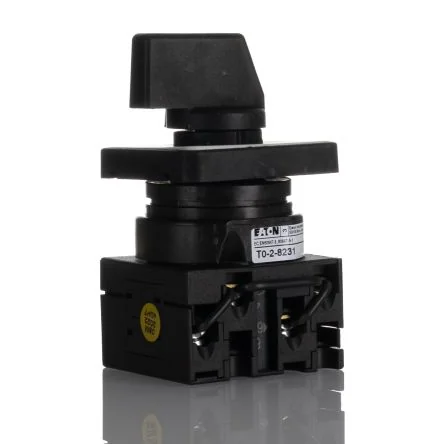 Eaton 4 Position Rotary Cam Step Switch - T0-2-8231/E • 4 position rotary cam switch • SPST pole and throw configuration • Screw terminals • 60° switching angle • Black thumb grip and white 1-4 front plate • Flush Mounting