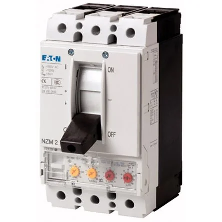 IEC/EN 60204; IEC/EN 60947; VDE 0660. EATON MCCBs - NZM2 Series. MCCBs, otherwise known as molded case circuit breakers, are devices that offer protection to motors, transformers, generators, and other equipment or systems. The NZM2 range from EATON offers compact breakers with 4 frame sizes and multiple installation and connection options. Available with thermal-magnetic and electronic tripping technology, they feature adjustable time selectivity and earth fault protection. With the option of on-board diagnostics and data logging on some models, for monitoring of critical circuits without the need for additional hardware. Discrete relay outputs available for high load warnings at 70%, 100% and 120%. EATON's NZM range also features circuit breaker accessories, and IEC switch disconnectors offering a broad portfolio of products. Features and Benefits:. 3 and 4 pole versions available 15A to 1600A current rating available Multiple installations and connection types available Easy fitting of undervoltage and shunt strips Diverse range of settings Tripping in milliseconds Circuit protection Standard black/grey handle ; 537-5719 537-5719 , Red/ yellow for emergency handle ; 537-5725 537-5725. Applications:. Ideal for panel builders, automation, engineering, and machinery OEMs. MCCBs offer overload protection from damage of excess current, overloads and short circuit, essential for motors, power generators, transformers, and other electrical equipment.