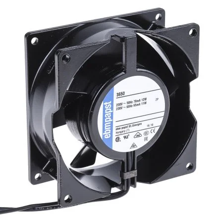 ebm-papst 3000 Series Axial Fan, 230 V ac, AC Operation, 75m³/h, 12W, 52mA Max, 92 x 92 x 38mm - 3650