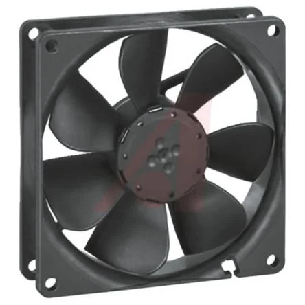 ebm-papst 3400N Series Ball Bearing DC Axial Fans. Ebm-papst ‘s 3400N series of DC axial fans have a ball bearing design to facilitate smooth operation at any orientation. They are protected against reverse polarity and locking, and feature fully integrated electronic communication for ease of use. These ball bearing fans are ideal for high performance thermal management. Features and Benefits. • Air exhaust over struts • Connection via single strands (AWG 24) • Fibreglass-reinforced plastic construction • Speed Signal • Go / No-go alarm • Alarm with limit speed • External and internal temperature sensor • PWN and Analogue control input. Applications. Ball bearing axial fans are often used to cool high density computing equipment, where high performance is required and noise isn ‘t a consideration. FAQ. Q: What are the advantages of ball bearing fans over sleeve bearing fans? A: Ball bearing fans are typically less prone to wear and tear than sleeve bearing, which makes them ideal for a longer service life. They are also able to operate in higher temperatures, and in any orientation. However, they are less rugged and can be more easily disrupted by impact, and tend to be noisier than their sleeve bearing counterparts. Q: Is the fan easy to operate? A:With completely integrated electronic communication, the fans require little input from the user to operate. Q: Is the fan durable? A: 3400N series ball bearing axial fans are constructed from glass fibre reinforced plastic, and are protected against a degree of particle ingress as standard. Q: Are there accessories available for this fan? A: There is a finger guard ( ; 512-575 512-575 ) and filter ( ; 200-7643 200-7643 ) available for this series of fans.