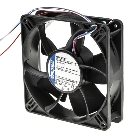 ebm-papst 4300N Series Axial FanThe ebm-papst 4300N series is a square-shaped DC axial fan. Its housing and impeller are made of plastic with ball bearing system. This fan has speed limit alarm, PWM and analogue control unit. It has external and internal temperature sensors. The fan has an electrical rating of 24VDC, 165mA and 4W with a speed of 2700rpm.Features and Benefits• Auto restart capability • Low noise level • Moisture protection • Operating temperature ranges between -20°C and 75°CApplications• Air conditioner • Heating and ventilation • Industrial electronics • RefrigerationCertifications• CCC • CE certified • CSA certified • EAC approved • UL approved • VDE approved