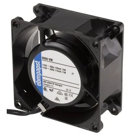 ebm-papst 8000 V Series Axial Fan, 115 V ac, AC Operation, 50m³/h, 12W, 80 x 80 x 38mm - 8500VW