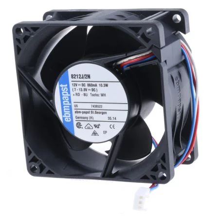 ebm-papst 8200 J Series Axial Fan, 12 V dc, DC Operation, 132m³/h, 10W, 80 x 80 x 38mm - 8212J/2N-RS0