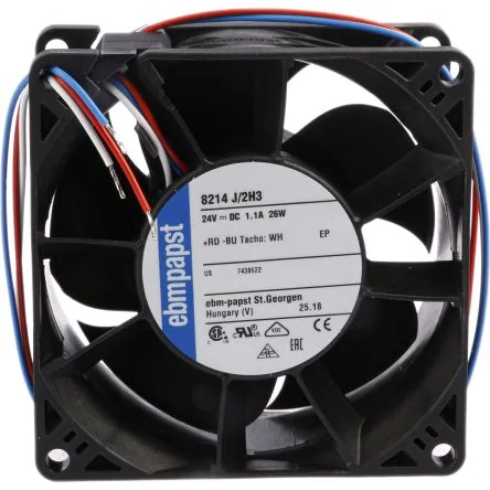 ebm-papst 8200 J Series Axial Fan, 24 V dc, DC Operation, 190m³/h, 26W, 80 x 80 x 38mm - 8214J/2H3