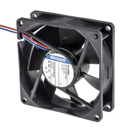 ebm-papst 8400 N Series DC Axial Fans. What is A DC Axial Fan?. DC axial fans are designed to create airflow with a high flow rate and medium pressure. Axial fans have an impeller surrounded by blades which works in a similar way to a propeller. The motor of the fan is integrated into the hub of the impeller to provide a compact fan unit. The impeller draws in air axially in a parallel direction to the revolving motor shaft and forces air out in the same direction. The axial fan is surrounded by a flanged housing with mounting holes allowing it to be mounted inside equipment. Efficient and Reliable Motor. • External Rotor Motor: Unlike traditional internal rotor motors where the rotating shaft is surrounded by electromagnetic coils ebm-papst fans feature an external rotor motor. In an external rotor motor the magnetic coils are encased inside a rotating shell. The advantage of this design is that external rotor motors are more compact in size, run more efficiently and are less prone to overheating than internal rotor motors • Brushless Motor: These DC fans have brushless motors where the electrical switching is carried out by electronic circuits rather than metal brushes. As they don't have any brushes to wear out, brushless motors are more efficient and reliable than AC motors and have a longer life span. The integrated electronics of brushless motors also allow extra interface options and motor protection to be built into the fan. Expertly Designed. The fan impellers and the inner shape housing of the ebm-papst compact DC axial fans are expertly designed using state-of-the-art computer software. The blades are aerodynamically engineered and dynamically balanced in two planes for optimum performance. The air output and motor performance are precisely matched to the size of the fan which results in low noise, even at high back pressure. Key Features and Benefits of the EBM Papst 8400 N and 8400 NG Series. • Performance from 33m ;sup>3 ;/sup>/h to a maximum of 79m ;sup>3 ;/sup>/h, depending on variant • Low, medium and high speed versions available • Fan motor integrated into the impeller hub to form a compact fan unit • External rotor motor with efficient and reliable brushless design • Air exhaust over the struts • Compact 80 x 80 mm design with small installation depth of 25 mm • Expertly designed for maximum efficiency and performance • Choice of durable ball bearings for high ambient temperatures and high service life or PAPST Sintec sleeve bearings for low noise and low shock sensitivity • Aerodynamic blades for low noise level and increased efficiency • Flanged housings with mounting holes for installation into equipment • Lightweight design with glass fibre reinforced plastic housing and impeller • Reverse polarity and locked rotor protection • IP20 protection rating • Service life of 117500 hours and above. How Do I Connect the Fan?. These 8400 N series DC axial fans feature AWG 24, TR 64 single wires which are stripped and tin plated at the end. What Accessories are Available?. • Metal and plastic finger guards: stock numbers ; 826-1376 826-1376 , ; 826-1379 826-1379 , ; 250-870 250-870 , ; 101-8068 101-8068 , ; 512-569 512-569 and ; 826-1373 826-1373 • Filter Fan Guard: stock number ; 221-336 221-336 , ; 507-911 507-911 and ; 200-7659 200-7659. Applications. These DC axial fans are designed for hot or cold air exchange in a wide range of devices and systems. These applications include the following:. • Audio/Video • Catering • Control equipment • Data storage • Domestic Appliances • Electronics • Heating and Ventilation • Laboratory • Lasers • Lighting • Machines ; Industrial • Pharmaceutical • Power optimisation • Power Supplies