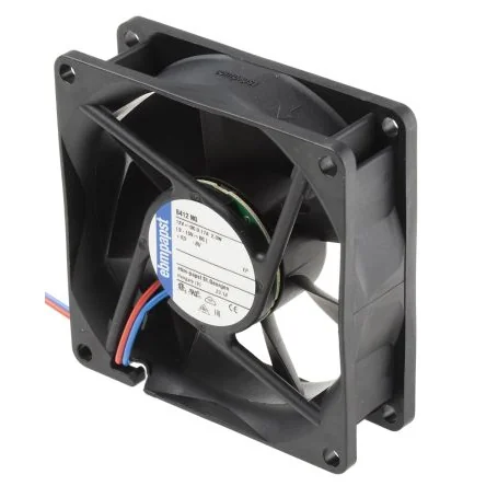 ebm-papst 8400 N Series DC Axial Fans. What is A DC Axial Fan?. DC axial fans are designed to create airflow with a high flow rate and medium pressure. Axial fans have an impeller surrounded by blades which works in a similar way to a propeller. The motor of the fan is integrated into the hub of the impeller to provide a compact fan unit. The impeller draws in air axially in a parallel direction to the revolving motor shaft and forces air out in the same direction. The axial fan is surrounded by a flanged housing with mounting holes allowing it to be mounted inside equipment. Efficient and Reliable Motor. • External Rotor Motor: Unlike traditional internal rotor motors where the rotating shaft is surrounded by electromagnetic coils ebm-papst fans feature an external rotor motor. In an external rotor motor the magnetic coils are encased inside a rotating shell. The advantage of this design is that external rotor motors are more compact in size, run more efficiently and are less prone to overheating than internal rotor motors • Brushless Motor: These DC fans have brushless motors where the electrical switching is carried out by electronic circuits rather than metal brushes. As they don't have any brushes to wear out, brushless motors are more efficient and reliable than AC motors and have a longer life span. The integrated electronics of brushless motors also allow extra interface options and motor protection to be built into the fan. Expertly Designed. The fan impellers and the inner shape housing of the ebm-papst compact DC axial fans are expertly designed using state-of-the-art computer software. The blades are aerodynamically engineered and dynamically balanced in two planes for optimum performance. The air output and motor performance are precisely matched to the size of the fan which results in low noise, even at high back pressure. Key Features and Benefits of the EBM Papst 8400 N and 8400 NG Series. • Performance from 33m ;sup>3 ;/sup>/h to a maximum of 79m ;sup>3 ;/sup>/h, depending on variant • Low, medium and high speed versions available • Fan motor integrated into the impeller hub to form a compact fan unit • External rotor motor with efficient and reliable brushless design • Air exhaust over the struts • Compact 80 x 80 mm design with small installation depth of 25 mm • Expertly designed for maximum efficiency and performance • Choice of durable ball bearings for high ambient temperatures and high service life or PAPST Sintec sleeve bearings for low noise and low shock sensitivity • Aerodynamic blades for low noise level and increased efficiency • Flanged housings with mounting holes for installation into equipment • Lightweight design with glass fibre reinforced plastic housing and impeller • Reverse polarity and locked rotor protection • IP20 protection rating • Service life of 117500 hours and above. How Do I Connect the Fan?. These 8400 N series DC axial fans feature AWG 24, TR 64 single wires which are stripped and tin plated at the end. What Accessories are Available?. • Metal and plastic finger guards: stock numbers ; 826-1376 826-1376 , ; 826-1379 826-1379 , ; 250-870 250-870 , ; 101-8068 101-8068 , ; 512-569 512-569 and ; 826-1373 826-1373 • Filter Fan Guard: stock number ; 221-336 221-336 , ; 507-911 507-911 and ; 200-7659 200-7659. Applications. These DC axial fans are designed for hot or cold air exchange in a wide range of devices and systems. These applications include the following:. • Audio/Video • Catering • Control equipment • Data storage • Domestic Appliances • Electronics • Heating and Ventilation • Laboratory • Lasers • Lighting • Machines ; Industrial • Pharmaceutical • Power optimisation • Power Supplies