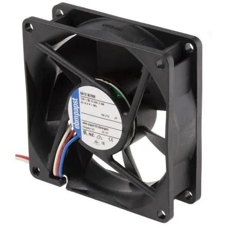 ebm-papst 8400 N Series DC Axial Fans with Tachometer Output. What is a DC Axial Fan?. DC axial fans are designed to create airflow with a high flow rate and medium pressure. Axial fans have an impeller surrounded by blades which works in a similar way to a propeller. The motor of the fan is integrated into the hub of the impeller to provide a compact fan unit. The impeller draws in air axially in a parallel direction to the revolving motor shaft and forces air out in the same direction. The axial fan is surrounded by a flanged housing with mounting holes allowing it to be mounted inside equipment. Efficient and Reliable Motor. • External Rotor Motor: Unlike traditional internal rotor motors where the rotating shaft is surrounded by electromagnetic coils ebm-papst fans feature an external rotor motor. In an external rotor motor the magnetic coils are encased inside a rotating shell. The advantage of this design is that external rotor motors are more compact in size, run more efficiently and are less prone to overheating than internal rotor motors • Brushless Motor: These DC fans have brushless motors where the electrical switching is carried out by electronic circuits rather than metal brushes. As they don't have any brushes to wear out, brushless motors are more efficient and reliable than AC motors and have a longer life span. The integrated electronics of brushless motors also allow extra interface options and motor protection to be built into the fan. Expertly Designed. The fan impellers and the inner shape housing of the ebm-papst compact DC axial fans are expertly designed using state-of-the-art computer software. The blades are aerodynamically engineered and dynamically balanced in two planes for optimum performance. The air output and motor performance are precisely matched to the size of the fan which results in low noise, even at high back pressure. Tachometer Output. These 8400 N/2GH DC axial fans have an integrated electronic tachometer that produces a signal giving information about the speed of the fan. A separate wire on the fan is used to transfer the signal. This feature enables constant external monitoring of the fan ‘s motor speed. Key Features and Benefits of the EBM Papst 8400 N/2GH Series. • Performance from 33m ;sup>3 ;/sup>/h to a maximum of 79m ;sup>3 ;/sup>/h, depending on variant • Low, medium and high speed versions available • Tachometer output for monitoring of fan speed • Fan motor integrated into the impeller hub to form a compact fan unit • Efficient and reliable brushless motor • Air exhaust over the struts • Compact 80 x 80 mm design with a small installation depth of 25 mm • Expertly designed for maximum efficiency and performance • Choice of PAPST Sintec sleeve bearings for low noise and low shock sensitivity or durable ball bearings for high ambient temperatures and high service life • Aerodynamic blades for low noise level and increased efficiency • Flanged housings with mounting holes for installation into equipment • Lightweight design with glass fibre reinforced plastic housing and impeller • Reverse polarity and locked rotor protection • IP20 protection • Service life of 117500 hours and above. How Do I Connect the Fan?. These 8400 N series DC axial fans feature AWG 24, TR 64 single wires which are stripped and tin plated at the end. Stock numbers ; 426-360 426-360 , ; 426-332 426-332 , ; 426-376 426-376 , ; 613-7439 613-7439 and ; 426-354 426-354 are fitted with a 3 pin molex connector. What Accessories are Available?. • Metal and plastic finger guards: stock numbers ; 826-1376 826-1376 , ; 826-1379 826-1379 , ; 250-870 250-870 , ; 101-8068 101-8068 , ; 512-569 512-569 and ; 826-1373 826-1373 • Filter Fan Guard: stock number ; 221-336 221-336 , ; 507-911 507-911 and ; 200-7659 200-7659. Applications. These DC axial fans are designed for hot or cold air exchange in a wide range of devices and systems. These applications include the following:. • Audio/Video • Catering • Control equipment • Data storage • Domestic Appliances • Electronics • Heating and Ventilation • Laboratory • Lasers • Lighting • Machines ; Industrial • Pharmaceutical • Power optimisation • Power Supplies