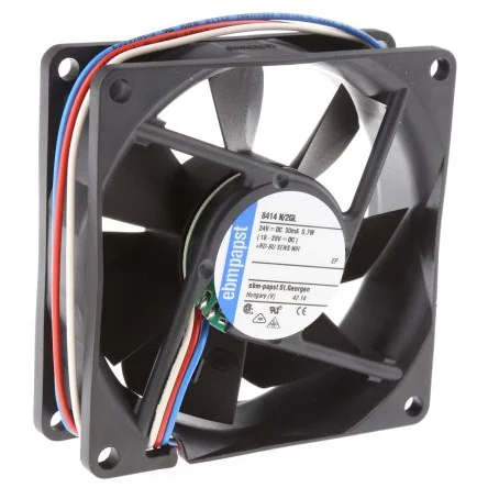 ebm-papst 8400 N Series DC Axial Fans with Tachometer Output. What is a DC Axial Fan?. DC axial fans are designed to create airflow with a high flow rate and medium pressure. Axial fans have an impeller surrounded by blades which works in a similar way to a propeller. The motor of the fan is integrated into the hub of the impeller to provide a compact fan unit. The impeller draws in air axially in a parallel direction to the revolving motor shaft and forces air out in the same direction. The axial fan is surrounded by a flanged housing with mounting holes allowing it to be mounted inside equipment. Efficient and Reliable Motor. • External Rotor Motor: Unlike traditional internal rotor motors where the rotating shaft is surrounded by electromagnetic coils ebm-papst fans feature an external rotor motor. In an external rotor motor the magnetic coils are encased inside a rotating shell. The advantage of this design is that external rotor motors are more compact in size, run more efficiently and are less prone to overheating than internal rotor motors • Brushless Motor: These DC fans have brushless motors where the electrical switching is carried out by electronic circuits rather than metal brushes. As they don't have any brushes to wear out, brushless motors are more efficient and reliable than AC motors and have a longer life span. The integrated electronics of brushless motors also allow extra interface options and motor protection to be built into the fan. Expertly Designed. The fan impellers and the inner shape housing of the ebm-papst compact DC axial fans are expertly designed using state-of-the-art computer software. The blades are aerodynamically engineered and dynamically balanced in two planes for optimum performance. The air output and motor performance are precisely matched to the size of the fan which results in low noise, even at high back pressure. Tachometer Output. These 8400 N/2GH DC axial fans have an integrated electronic tachometer that produces a signal giving information about the speed of the fan. A separate wire on the fan is used to transfer the signal. This feature enables constant external monitoring of the fan ‘s motor speed. Key Features and Benefits of the EBM Papst 8400 N/2GH Series. • Performance from 33m ;sup>3 ;/sup>/h to a maximum of 79m ;sup>3 ;/sup>/h, depending on variant • Low, medium and high speed versions available • Tachometer output for monitoring of fan speed • Fan motor integrated into the impeller hub to form a compact fan unit • Efficient and reliable brushless motor • Air exhaust over the struts • Compact 80 x 80 mm design with a small installation depth of 25 mm • Expertly designed for maximum efficiency and performance • Choice of PAPST Sintec sleeve bearings for low noise and low shock sensitivity or durable ball bearings for high ambient temperatures and high service life • Aerodynamic blades for low noise level and increased efficiency • Flanged housings with mounting holes for installation into equipment • Lightweight design with glass fibre reinforced plastic housing and impeller • Reverse polarity and locked rotor protection • IP20 protection • Service life of 117500 hours and above. How Do I Connect the Fan?. These 8400 N series DC axial fans feature AWG 24, TR 64 single wires which are stripped and tin plated at the end. Stock numbers ; 426-360 426-360 , ; 426-332 426-332 , ; 426-376 426-376 , ; 613-7439 613-7439 and ; 426-354 426-354 are fitted with a 3 pin molex connector. What Accessories are Available?. • Metal and plastic finger guards: stock numbers ; 826-1376 826-1376 , ; 826-1379 826-1379 , ; 250-870 250-870 , ; 101-8068 101-8068 , ; 512-569 512-569 and ; 826-1373 826-1373 • Filter Fan Guard: stock number ; 221-336 221-336 , ; 507-911 507-911 and ; 200-7659 200-7659. Applications. These DC axial fans are designed for hot or cold air exchange in a wide range of devices and systems. These applications include the following:. • Audio/Video • Catering • Control equipment • Data storage • Domestic Appliances • Electronics • Heating and Ventilation • Laboratory • Lasers • Lighting • Machines ; Industrial • Pharmaceutical • Power optimisation • Power Supplies
