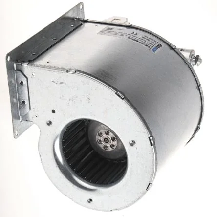 ebm-papst Centrifugal BlowerThe ebm-papst D2E 097 series 230VAC dual inlet centrifugal blower has an electronically commutated motor with an external rotor motor. This blower is integrated within the impeller that reduces the installation dimensions. The fan is featured with forwarded curved blades. It is an ideal solution for a wide range of applications and also suitable for intake suction use. The scroll housing is open on both the sides for added efficiency and reduction in noise level. The robust and space-saving design of this ebm-papst centrifugal blower makes it versatile and easy to use. Note: To prevent overloading the motor, it should be operated against the minimum static pressures.Features and BenefitsMotors are sealed for life, maintenance free, class B insulation Impeller is forward curved multi-vane type Body is made from heavy duty, riveted galvanised steel Ball bearing type may be mounted in any position Noise level is 58dB Airflow of 435m³/hour Fan speed is 1950rpmCertificationsEN 60335 CE certified IP44 rated
