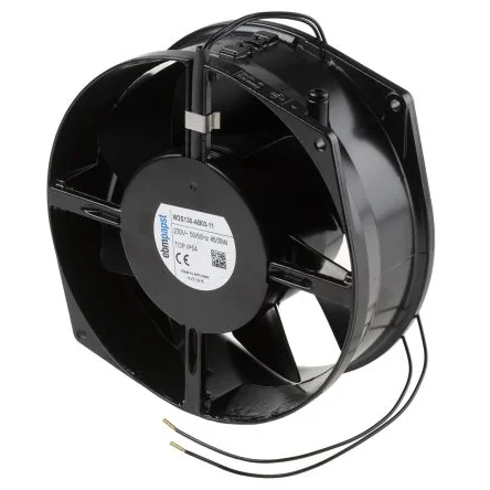 ebm-papst W2S130 Tubeaxial AC Fans. What is an axial AC Fan?. An axial fan is a device that creates airflow by using a motor to rotate blades housed within in a square or round frame. The rotating fan blades draw air into the fan and expel the flow in the same direction across a surface to cool it. Axial fans are a vital component ensuring the smooth operation of machinery and electronic equipment. Keeping equipment cool is crucial as overheating can lead to serious complications including premature deterioration of parts, shorter life spans and sometimes, complete failure.. W2S130 Tube axial AC Fans. The W2S130 Series of Tube axial fans from ebm-papst provide a convenient, cost effective solution for all your cooling requirements. The compact high performance equipment cooling fans are designed to generate high volumes of air at low pressures. The low noise energy saving fans constructed from a diecast aluminium frame with a black coated impeller. The impedance protected shaded pole motor is integrated into the central fan hub. Key Features and Benefits of the W2S130 ebm-papst Axial Fans. • Compact dimensions, enables fans to be incorporated into equipment where component mounting space is limited. • Robust aluminium construction, ideal for industrial applications. • Black coated sheet steel impeller, directly welded onto rotor. • Expertly designed aerodynamic fan blades supporting excellent efficiency and low noise levels. • Impedance protected shaded pole motor, protects the fan motors from burning out if the rotor locks. • Maintenance free ball bearing system, supporting excellent performance and life expectancy • Balanced in two planes according to DIN ISO 1940 • IP20 dust ingress protection. Q and A's. How is the fan mounted? The W2S130 fans have 2 x 4.35 mm / 4.45 mm holes in the two outer corners of the circular frame for mounting into a panel. How is the fan connected? The W2S130 fans are connecter via a 330 mm 22 AWG wire starting from the wall ring. Are there any accessories available? Finger guards are purposely designed to prevent contact with rotating parts and the ingress of foreign particles. A galvanised steel guard is available separately. See part number ; 434-9797 434-9797. Applications. Axial fans are utilised across all areas of industry where the cooling of components, machines and hardware is essential. Some of the most common applications are;. • Electrical cabinets and enclosures – Axial fans installed into enclosures and cabinets to cool components preventing premature failure. • Server racks – Fans are used to keep hubs, routers and data patch panels cool. • Production lines or areas where motors are in use constantly, helping to prolong motor and gearbox life.