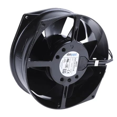 ebm-papst W2S130 Tubeaxial AC Fans. What is an axial AC Fan?. An axial fan is a device that creates airflow by using a motor to rotate blades housed within in a square or round frame. The rotating fan blades draw air into the fan and expel the flow in the same direction across a surface to cool it. Axial fans are a vital component ensuring the smooth operation of machinery and electronic equipment. Keeping equipment cool is crucial as overheating can lead to serious complications including premature deterioration of parts, shorter life spans and sometimes, complete failure.. W2S130 Tube axial AC Fans. The W2S130 Series of Tube axial fans from ebm-papst provide a convenient, cost effective solution for all your cooling requirements. The compact high performance equipment cooling fans are designed to generate high volumes of air at low pressures. The low noise energy saving fans constructed from a diecast aluminium frame with a black coated impeller. The impedance protected shaded pole motor is integrated into the central fan hub. Key Features and Benefits of the W2S130 ebm-papst Axial Fans. • Compact dimensions, enables fans to be incorporated into equipment where component mounting space is limited. • Robust aluminium construction, ideal for industrial applications. • Black coated sheet steel impeller, directly welded onto rotor. • Expertly designed aerodynamic fan blades supporting excellent efficiency and low noise levels. • Impedance protected shaded pole motor, protects the fan motors from burning out if the rotor locks. • Maintenance free ball bearing system, supporting excellent performance and life expectancy • Balanced in two planes according to DIN ISO 1940 • IP20 dust ingress protection. Q and A's. How is the fan mounted? The W2S130 fans have 2 x 4.35 mm / 4.45 mm holes in the two outer corners of the circular frame for mounting into a panel. How is the fan connected? The W2S130 fans are connecter via a 330 mm 22 AWG wire starting from the wall ring. Are there any accessories available? Finger guards are purposely designed to prevent contact with rotating parts and the ingress of foreign particles. A galvanised steel guard is available separately. See part number ; 434-9797 434-9797. Applications. Axial fans are utilised across all areas of industry where the cooling of components, machines and hardware is essential. Some of the most common applications are;. • Electrical cabinets and enclosures – Axial fans installed into enclosures and cabinets to cool components preventing premature failure. • Server racks – Fans are used to keep hubs, routers and data patch panels cool. • Production lines or areas where motors are in use constantly, helping to prolong motor and gearbox life.