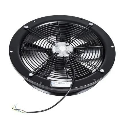 ebm-papst Axial Plate FanThe ebm-papst axial plate fan has an airflow of 1440m³/h and a supply voltage rating of 230VAC. It is a helical fan with encapsulated ball bearings. This fan is equipped with a yellow chrome-plated protective grille located on the inlet side. The fan is produced with a single-phase external rotor with phase-shifting rings. It is available with a diameter of 397mm and depth of 80mm.Features and BenefitsFan speed of 1380rpm Noise level of 62dB Power consumption of 94W Thermal protection by thermos-contact and windings. AC operation Blade diameter of 300mm Ball bearing Maximum current of 670mAApplicationsAir conditioning of equipment Air renewal and cooling of electrical and electronic equipmentCertificationsANSI/ESD S20.20:2014 BS EN 61340-5-1:2007