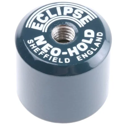 Eclipse Neodymium Deep Pot Bi-pole MagnetThe Eclipse neodymium deep pot bi-pole magnet is made of ’rare earth’ iron boron material and has two poles close together to achieve very strong gripping forces of up to 16kg. There are two mild steel pole pieces (circular segment shaped) with a magnet between the mild steel poles. It has a threaded hole at the back for fixing. The magnet can be used at temperatures of up to 80°C. Supplied with Keepers.Features and BenefitsTotal height of 20mm and diameter of 22.2mm Slot width of 5.5mm Aluminium pot Anisotropic High resistance to de-magnetisation M6 thread size N35 grade material (Nickel plated) Strongest magnetic performance Weight is 0.04kg