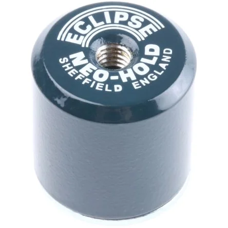 Eclipse Neodymium Deep Pot Bi-pole MagnetThe Eclipse neodymium deep pot bi-pole magnet is made of ’rare earth’ iron boron material and has two poles close together to achieve very strong gripping forces of up to 25.0kg. There are two mild steel pole pieces (circular segment shaped) with a magnet between the mild steel poles. It has a threaded hole at the back for fixing. The magnet can be used at temperatures of up to 80°C. Supplied with Keepers.Features and BenefitsTotal height of 25mm and diameter of 25.4mm Slot width of 5.5mm Aluminium pot Anisotropic High resistance to de-magnetisation M6 thread size N35 grade material (Nickel plated) Strongest magnetic performance Weight is 0.07kg