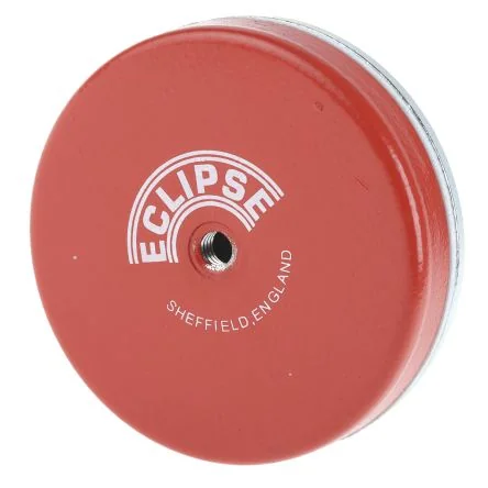 Eclipse Ferrite Shallow Pot MagnetThe Eclipse red ferrite shallow pot magnet is supplied with a detachable M6 threaded hook and pull force up to 25kg. It is ideal for limpet types gripping applications such as ’bases’ to machine tool accessories and industrial light fittings. This ferrite magnet has a maximum operating temperature of 120°C.Features and BenefitsHeight of 10.7mm and diameter of 66mm Excellent resistance to corrosion High resistance to demagnetisation Mild steel pot with removable hook Fitted with a J bolt Zinc plated Weight is 0.190kg