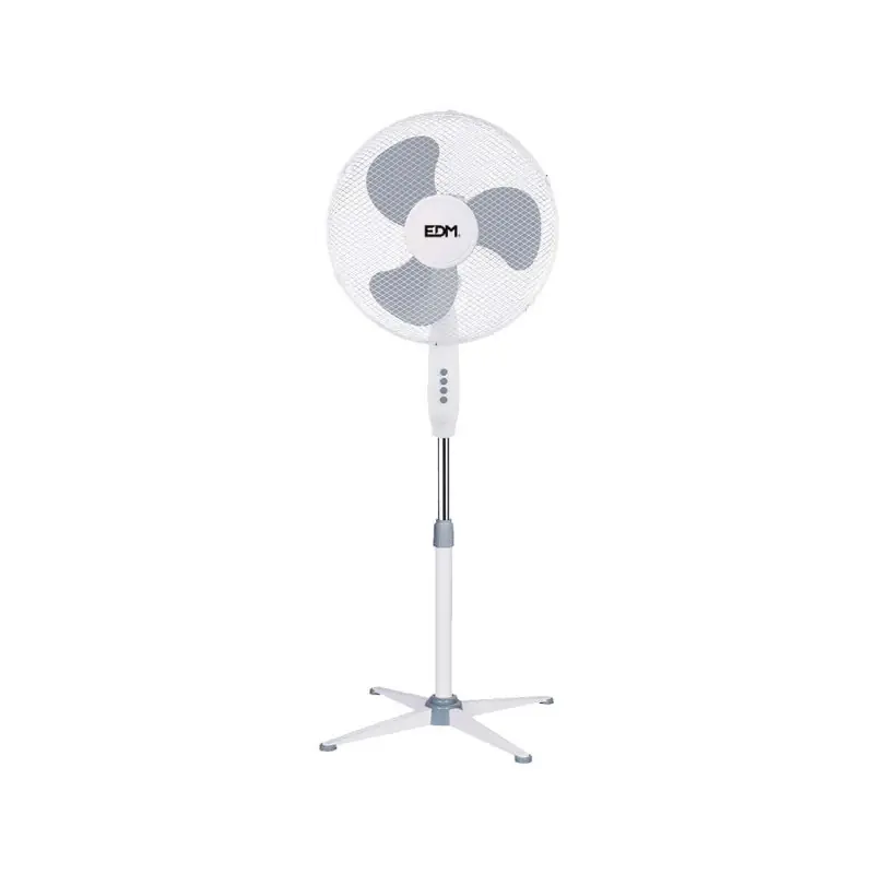 EDM 45W Floor Fan - 40cm - White 33500 fan with a power of 45 watts and a blade diameter of 40cm. Its height is adjustable from 105 to 125 cm.
