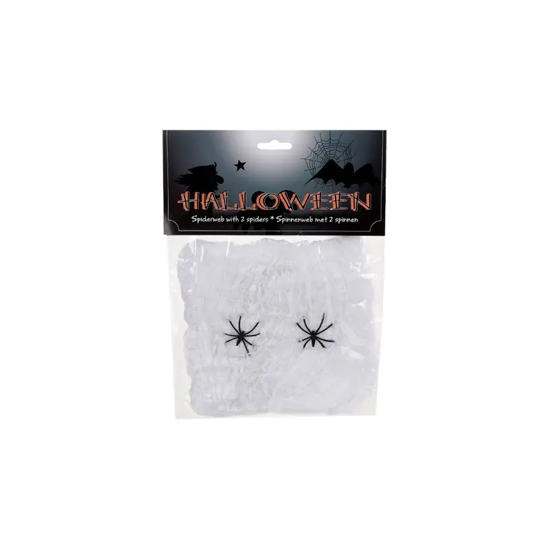 Halloween Spider Web EDM - 71795 a simple way to create a spooky atmosphere in your home. The product comes with two small spiders to hang on the web.